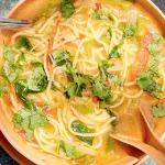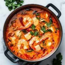 Vegetable thin broth with combination of lemon grass, kaffir lime leaves, galangal, lime juice, tom yum paste and coconut milk