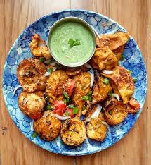 Momos marinated with tandoori masala and yogurt and grilled with green and momos chutney